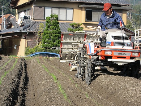田植機を使ってネギを移植しました。